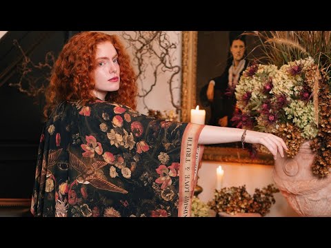 Hand-painted swallows from an 1865 scrapbook take flight across the fabric, carrying between them a delicate ribbon — a timeless symbol of connection and faithfulness. Among them, floral wreaths by 17th-century artist Karel Batist bloom with quiet grace, framing a sacred heart from Notre Dame in France, embroidered with gilded thread in 1872. Along the trim, a vintage Victorian banner unfurls the words “friendship, love, and truth” — a reminder of what truly matters: the golden threads that hold us together, and the love that makes it all worthwhile.