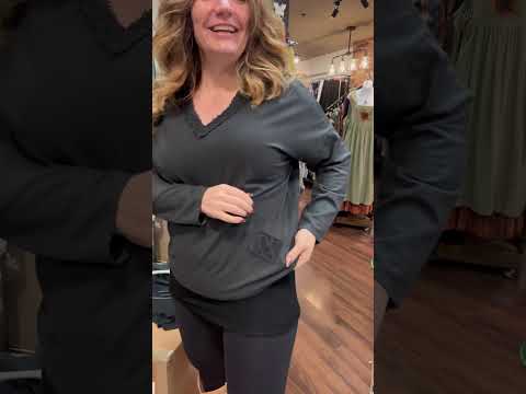 Crafted from soft cotton with a hint of stretch, this top feels like your favorite lived-in sweatshirt but with a more elevated, artsy edge. The charcoal shade makes it endlessly wearable, and yes — it pairs perfectly with the matching wide-leg sweatpant for the cutest, comfiest set.